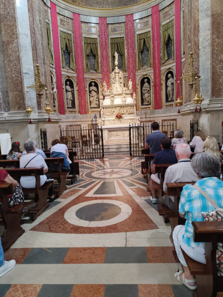 Elsőként Bolognába utaztak, ahol a Szent Domonkos-bazilikában, a rendalapító ereklyéit őrző márványoltáron mutatott be szentmisét Bejczi Tibor OP.