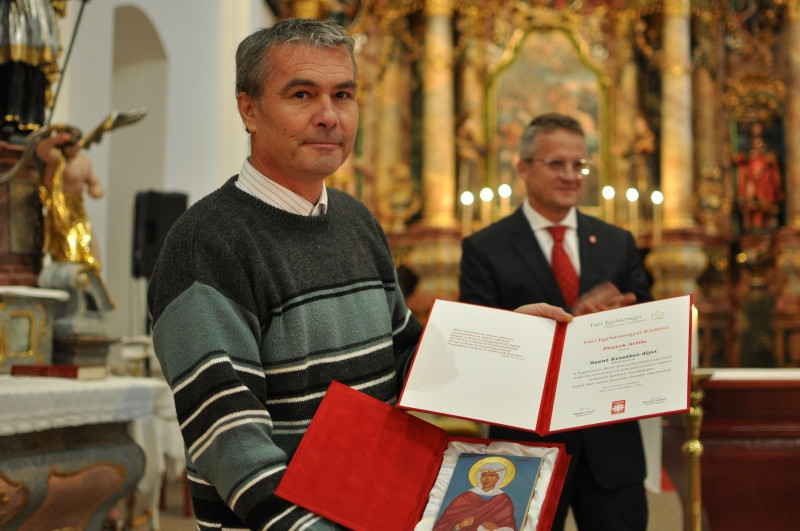 Péntek Attila a Nagymarosi Szent Rókus Karitászcsoport segítője, aki mindig ott van, ahol kell, akkor, amikor kell. Csendes, ugyanakkor alapos, figyelmes segítő, aki önállóan, kiváló helyzetfelismeréssel támogatja a Katolikus Karitász munkáját. Nem vár felkérésre, utasításra, hanem meglátja a helyzeteket „fúrót, fűrészt ragad, autóba száll” és megoldja a problémákat, mert neki ez a világ legtermészetesebb dolga.