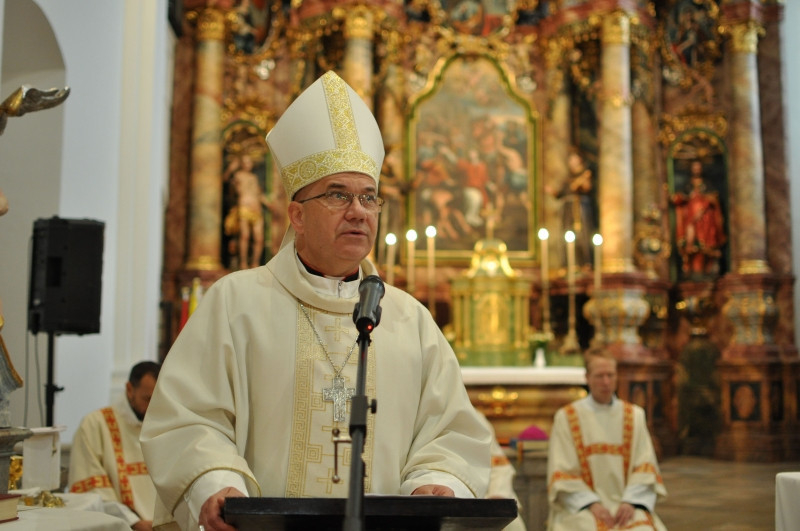 „Szent Márton harmadik »lelki ruhája« az imádságos lelkülete volt. Ő az imádságot nem házi feladatnak, hanem Istennel való bensőséges kapcsolatnak tekintette. Életrajzírója, Sulpicius Severus halála előtti óráiról így ír: »Amikor pedig a köréje gyűlt papok arra kérték, hogy forduljon a másik oldalára, és így könnyítsen törékeny testén, azt mondta: Hagyjatok, testvéreim, hadd nézzem inkább az eget, mint a földet!« – Kérjük Szent Mártont, segítsen nekünk úgy imádkoznunk, hogy lelki kezeinket, azaz akaratunkat, lelki szemeinket és szívünket mindig, minden tevékenységünk közben fölfelé irányítsuk! Kérjük, hogy tanítson bennünket a szegények és rászorulók iránt érzékenynek és segítőkészeknek, hitünk megvallásában és ebből fakadó erkölcsi életünkben szilárdnak lennünk, és mindezt Istennek odaadott, fölfelé tekintő, reményteli imáinkkal tudjuk kísérni! Szent Márton püspök szegények támogatója, hitünk védelmezője, imaéletünk példaképe, könyörögj érettünk!” – imádkozott beszéde végén a főpásztor.