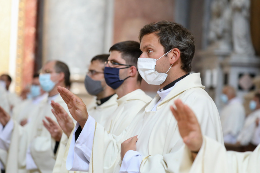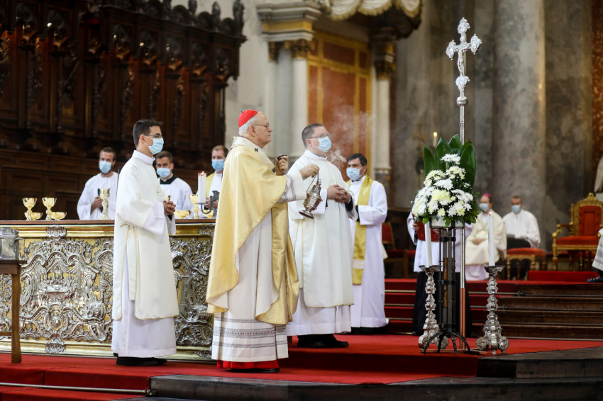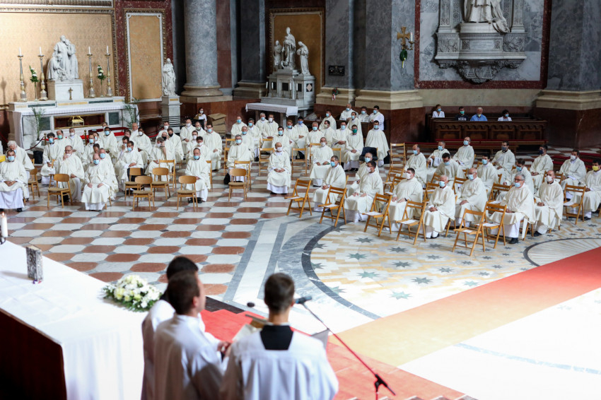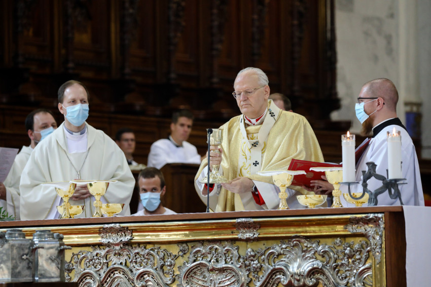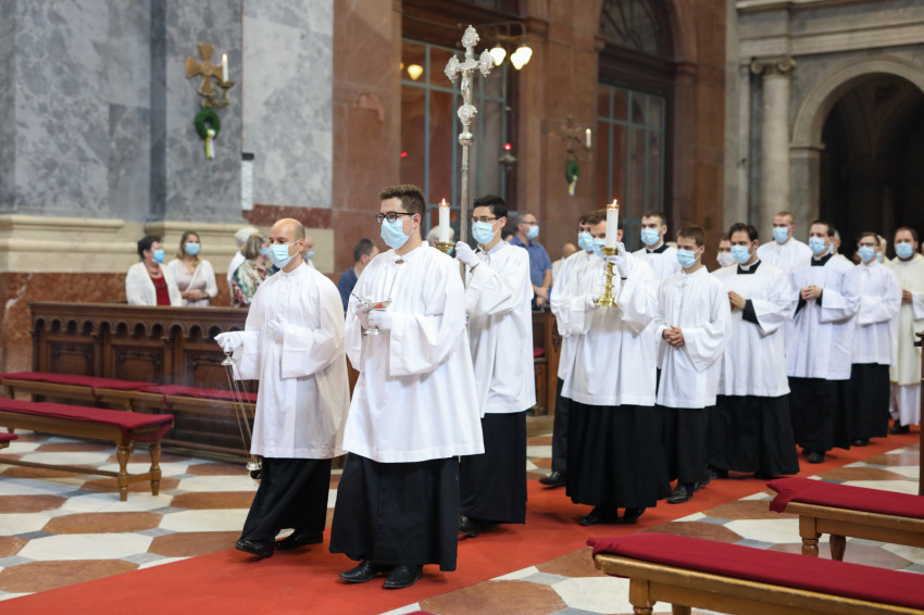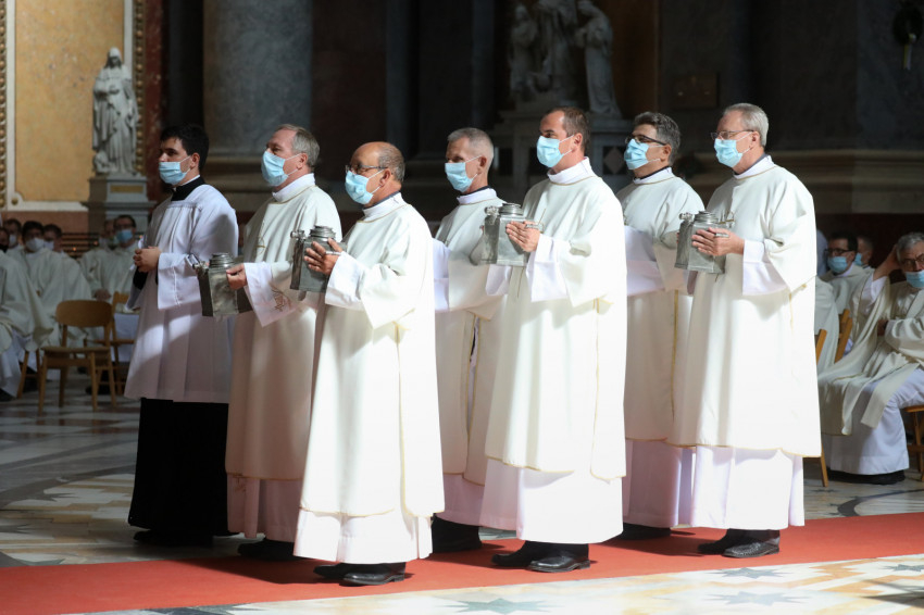 Erdő Péter bíboros az Esztergom-Budapesti Főegyházmegye papságával és az egyházmegye területén szolgáló szerzetes papokkal együtt mutatta be a szentmisét. Koncelebrált Mohos Gábor segédpüspök, valamint a főegyházmegye papsága, és együtt ünnepeltek a főegyházmegye diakónusai is. A szentmisét a járványügyi óvintézkedéseket betartva ünnepelték.