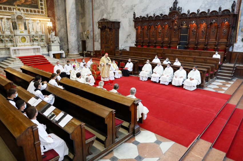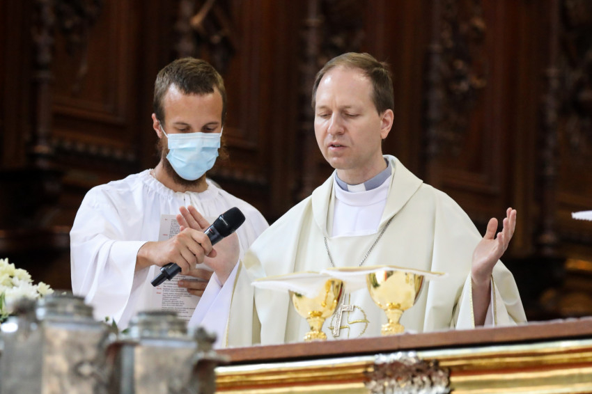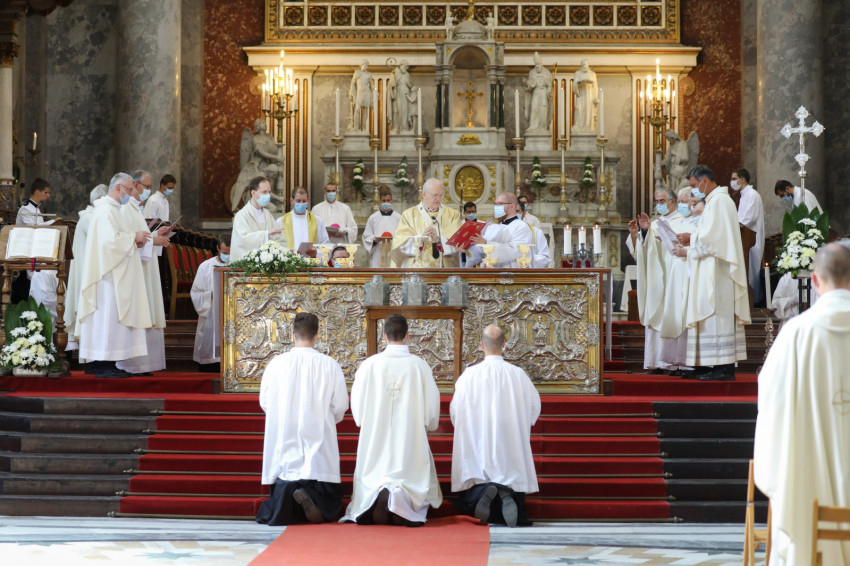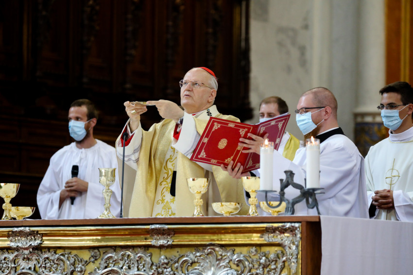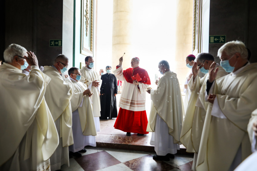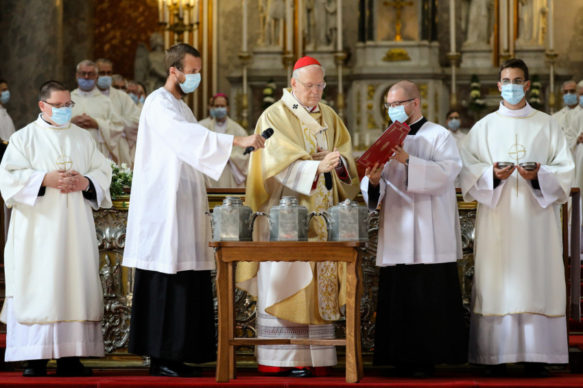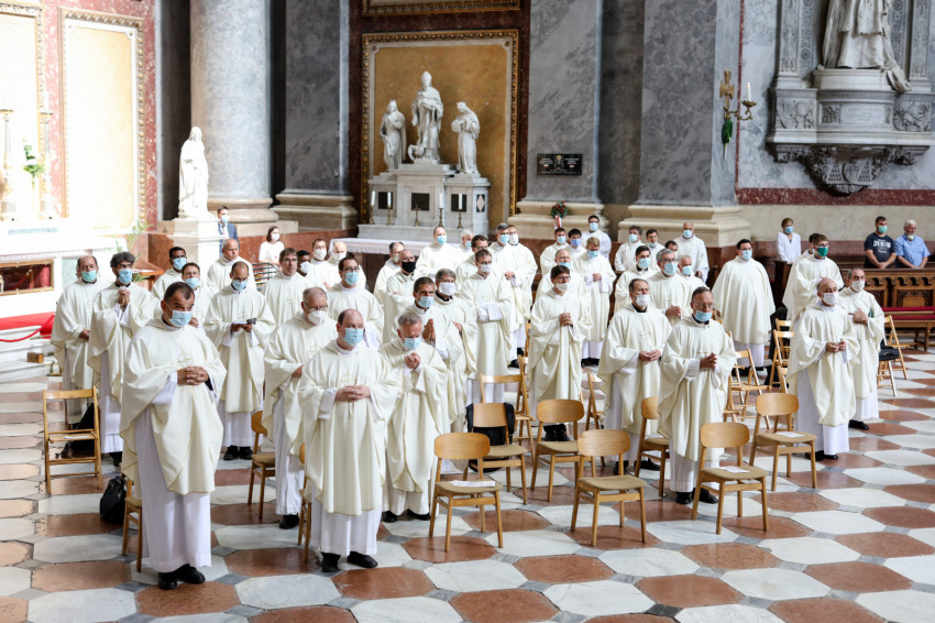 Erdő Péter bíboros az Esztergom-Budapesti Főegyházmegye papságával és az egyházmegye területén szolgáló szerzetes papokkal együtt mutatta be a szentmisét. Koncelebrált Mohos Gábor segédpüspök, valamint a főegyházmegye papsága, és együtt ünnepeltek a főegyházmegye diakónusai is. A szentmisét a járványügyi óvintézkedéseket betartva ünnepelték.