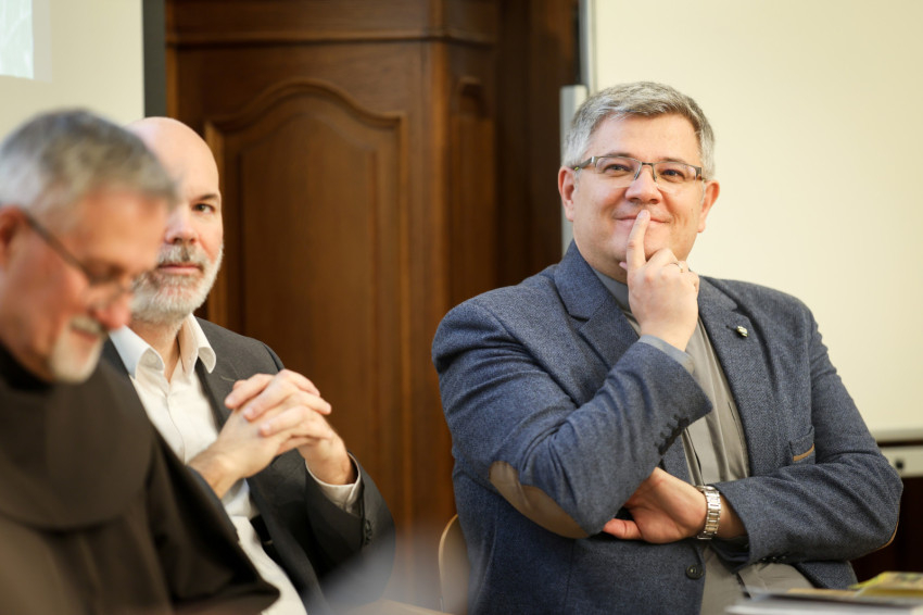 A Sapientia rektora leszögezte: nagy öröm számukra, hogy helyet adhatnak a könyvbemutatónak, már csak azért is, mert az általa vezetett intézmény a szerzetesi karizmák tanulmányozásának központi helye ma Magyarországon. Az új útikönyvben a ferences karizmára kaphatunk rálátást, pusztán a könyv olvasásával is. Ehhez csatlakozik aztán a zarándokélmény. Bagyinszki Ágoston kiemelte a kötet közepéből a Porciunkula-kápolnáról szóló részt. Ez talán a legkedvesebb helyszín a számára, hiszen Szent Ferenc itt kezdte meg a testvéri közösség szervezését. Ma már a Santa Maria degli Angeli-bazilika magasodik e kápolna fölé. Ágoston testvért mindig lenyűgözte annak a jelképes üzenete, ahogyan ezt a kis kápolnát olyan védelmezően öleli körül a hatalmas székesegyház, miközben éppen a kicsi, egyszerű kápolna képviseli a nagy templom lelkét. „Ez a paradoxon számomra Assisi üzenetének a lényege, az egyszerűségben lévő nagyszerűségnek az evangéliumi paradoxona.”
