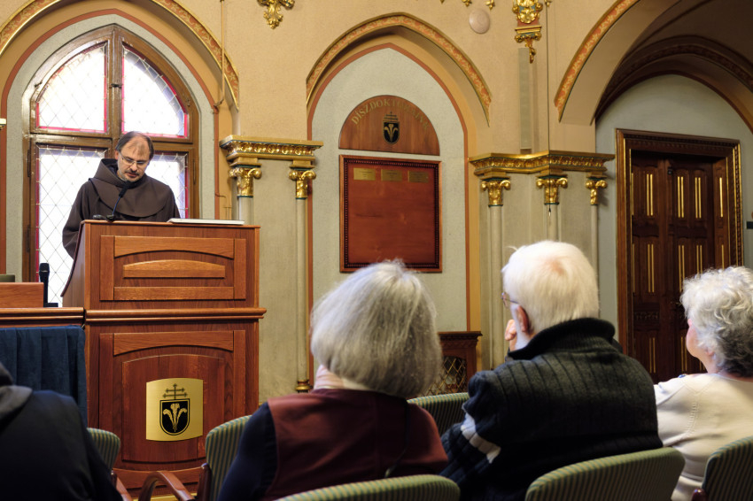 Mohay Tamás néprajzkutató, egyetemi tanár Szent Ferenc tekintetében: A szenvedés éjszakája és az öröm világossága című előadását kérdésekkel kezdte: „Milyen lehetett Szent Ferenc tekintete, amikor fölkelt a nap San Damianóban, ahol egy virrasztásban vigasztalanul átkínlódta az éjszakát?