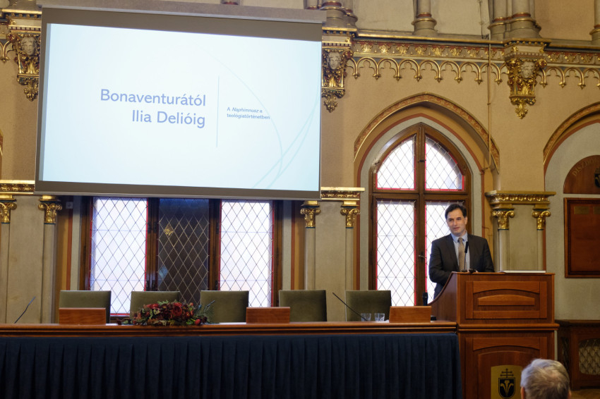 A konferencia első előadását Görföl Tibor teológus, egyetemi oktató, a Vigilia katolikus folyóirat főszerkesztője tartotta, Bonaventurától Ilia Delióig: A Naphimnusz a teológiatörténetben címmel. Emlékeztetett rá: Szent Bonaventura, a középkor egyik legnagyobb teológusa, aki 1254-től kezdve tizenhat évig volt a ferences rend generálisa, 1260–63 között pedig megírta Szent Ferenc életét, a Naphimnuszt nem említi kifejezetten, de több szövegben utalásokat tesz a témájára. Életrajza nyolcadik fejezetének hatodik pontjában például ezt mondja: a teremtményeket, akármilyen kicsik legyenek is, fivérének és nővérének nevezte Ferenc, mégpedig azért, mert tudta, közös az eredetük, közös a forrásuk: a teremtő Isten. A kilencedik fejezetben pedig arról beszél Bonaventura, hogy