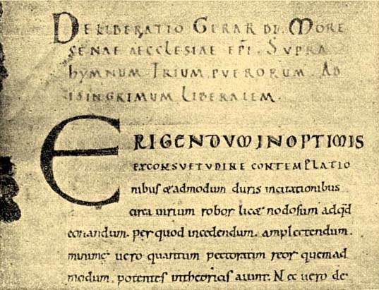 A 11. században született írás, Gellért püspök Deliberatio Gerardi Moresauae aecclesiae episcopi supra Hymnum trium puerorum ad Isingrimum liberalem (A marosi egyház püspökének, Gellértnek értekezése a három ifjú énekéről a tudós Isingrimusnak) című hittudományi értekezése a magyarországi latin nyelvű irodalom legrégibb maradványa Szent István király intelmei mellett.