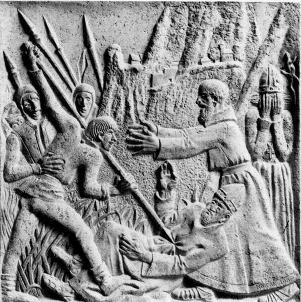 Szent István halála után a vallási és trónviszályok idején Gellért a lázadók kezére kerül. 1046 szeptemberében az egyik reggel, a Szent Szabina-templomban mondott miséje közben látomása volt közelgő vértanúságukról. Az úgynevezett pesti révhez közeledve Vata pogány lázadói kőzáporral törtek rájuk, és a püspököt a később róla elnevezett Kelen-hegy szikláiról a mélybe taszították. Holttestét ideiglenesen a pesti Boldogasszony-templomban (a mai belvárosi főplébánia-templom helyén álló templomban) temették el, később átszállították Csanádra. Szent László uralkodása idején, 1083-ban avatták szentté István királlyal és Imre herceggel együtt.