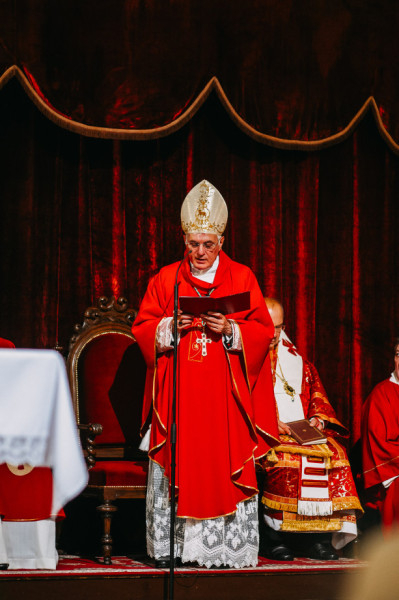 Köszöntötte a jelen lévő püspököket – Đuro Džudžar bácskeresztúri görögkatolikus, Kiss-Rigó László szeged–csanádi, Fabijan Svalina szerémségi, Fazekas Ferenc szabadkai megyéspüspököt, Martin Roos nyugalmazott temesvári és Đuro Gašparović nyugalmazott szerémségi megyéspüspököt.