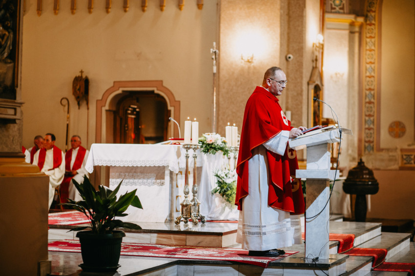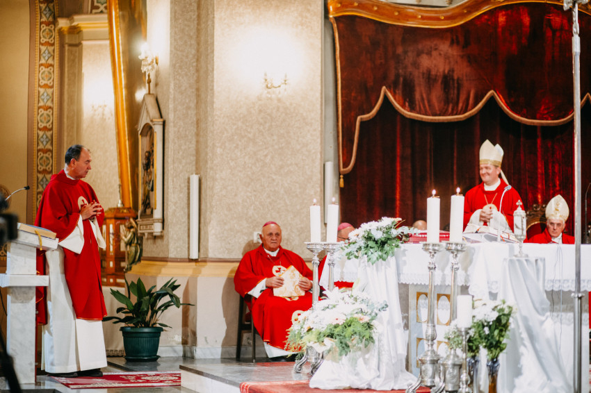 A szentmise elején a házigazda megyéspüspök, Mirko Štefković köszöntötte a jelenlévőket, külön üdvözölve a szertartás főcelebránsát, Gangemi nunciust. Megköszönte, hogy elfogadta a meghívást, hogy vezesse a szentmisét és bátorítsa a híveket, majd arra kérte, tolmácsolja Leó pápának az egész egyházmegye hűségét és köszöntését.