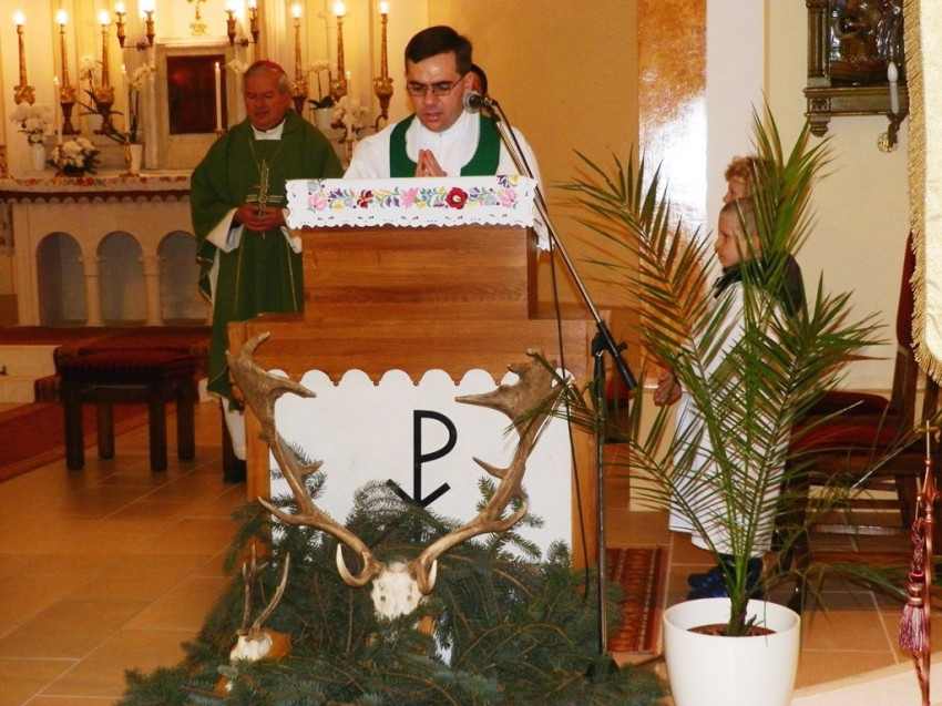 Az ünnepi szentmisét követően a vadászok tiszteletére fogadást rendeztek a tiszaszigeti Vedres István Faluházban, ahol Kiss-Rigó László asztali áldását megelőzően Imri András, a tiszaszigeti Dél-Tiszai Vadásztársaság elnöke, valamint Ferenczi Ferenc, Tiszasziget polgármestere köszöntötte a vendégeket.