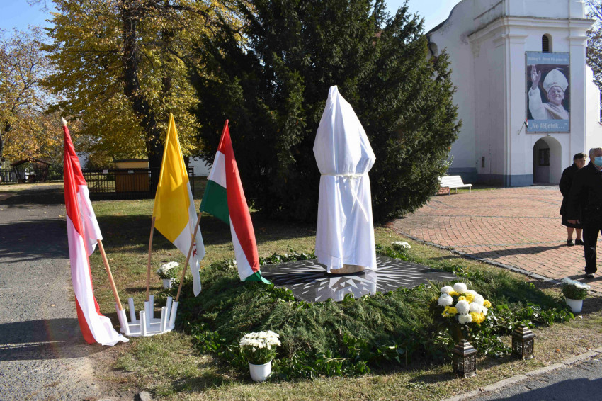 A műsor után került sor a szobor leleplezésére, Varga László megyéspüspök pedig megáldotta és megszentelte az alkotást.