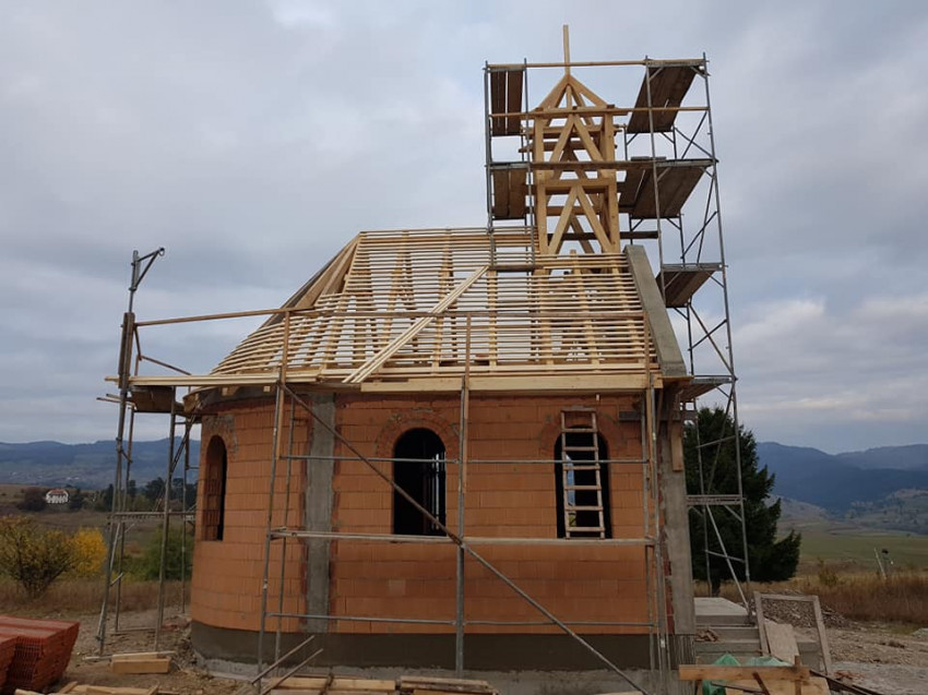 A Szent Ilona-kápolna építése október végére látványos szakaszhoz érkezett: az épületet befedték és a keresztet is elhelyezték a tornyon.
