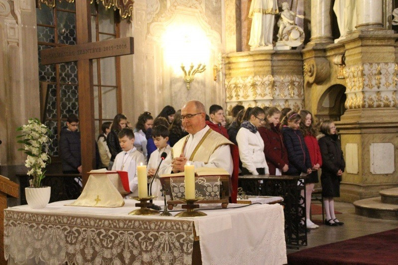 A püspöki biztos homíliájában arról beszélt, mit jelent ma példaképnek lenni, mi az, ami igazán fontos. „Fontos a család, a kegyelemteli, szeretetben való összetartozás. Sokat jelent, ha valakit jó barátok, jó tanárok vesznek körül. Szent Imre örök példakép. Az ő élete, ahogy a családjához, a tanítójához, a tanulmányaihoz és a társaihoz viszonyult, példaértékű minden jó lelkületű ember számára. Szent Imrének is fontos volt, hogy a szüleivel szent családban élhessen, tanulhasson, imádkozhasson. Hétéves korától Szent Gellért tanította. Becsülettel, szorgalommal tanult és imádkozott, mert ezekben a dolgokban is megtalálta a boldogságot. Ahogy akkor, ma is fontos a tudás megszerzése, mert a tudás emeli az embert, soha el nem vehető, és sokakat szolgálhat. És bár a kisebbek még ezekből a dolgokból nem értenek sok mindent, fontos, hogy a család mellett mi, nevelők is segítsük az ifjúságot, hogy jók, tiszta szívűek és becsületesek legyenek. Meg kell mutatni ezt az életszentséget. Emeljük fel őket, hogy csillagként ragyoghassanak és szentté válhassanak, ahogy Szent Imrét is felemelte Isten a szentek közé!” – zárta gondolatait Ugrits Tamás.