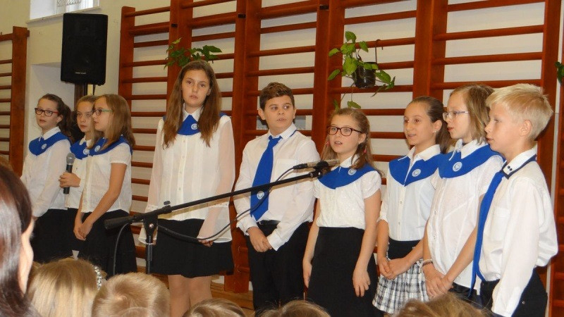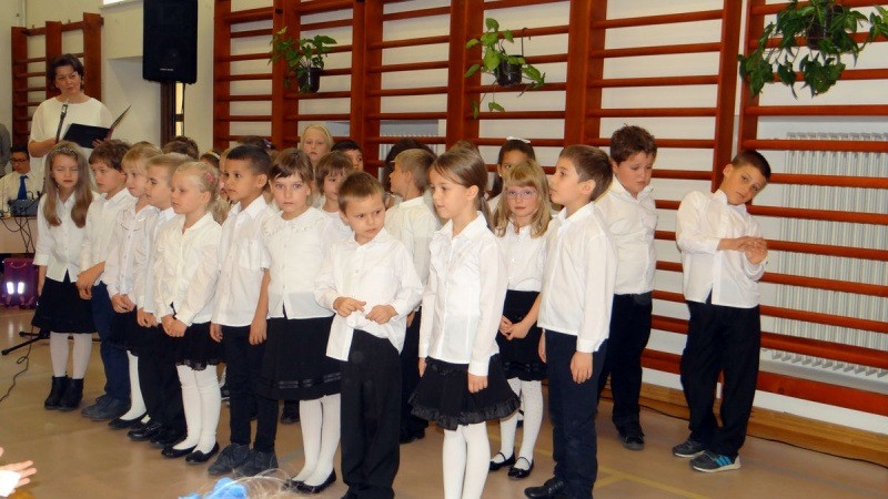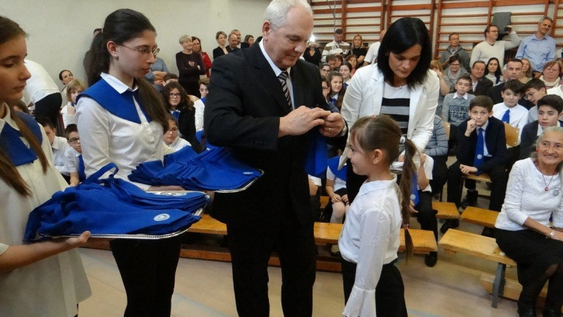 A szentmisét követően az iskolában folytatódó ünnepségen az ötödik és az első osztályos gyermekek műsorát hallgathatták meg a szülők és a jelenlévők. Ezt és az elsősök ünnepélyes fogadalomtételét követően Csák Lajos igazgató adta át az új tanulóknak a Szent Imre-iskolához tartozást jelképező gallért és nyakkendőt, majd kézfogással fogadta őket az intézmény közösségébe. Ugrits Tamás egy-egy kereszttel ajándékozta meg az új diákokat, hogy emlékeztesse őket Isten odaadó szeretetére.