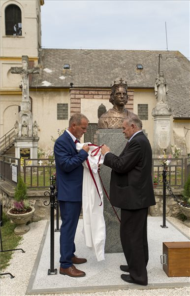 A katolikus templom szomszédságában álló, bronzból készült Szent Imre-mellszobor Lantos Györgyi alkotása.
