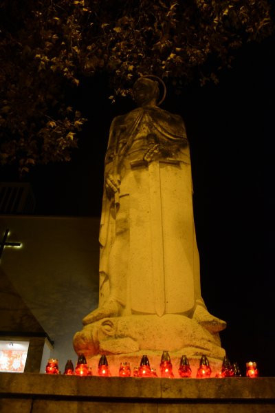November 4-én alkonyatkor a püspökvár udvarán kezdtük meg Szent Imre-napi megemlékezésünket. Az ott található Szent Imre-szobor előtt rövid, közös imádsággal, a szent életének néhány epizódját felelevenítve, mécseseink elhelyezésével emlékeztünk a magyar szent család legifjabb tagjára.