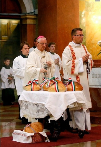 Spányi Antal püspök az új kenyeret idén a szentmise végén a székesegyházban áldotta meg, Szent István fehérvári koponyaereklyéje előtt. „A kenyér a mi nyelvünkben az életet jelenti, a jelent és jövőt. Ezzel az áldással a mindennapunkat szenteljük meg” – mondta a püspök, majd hozzátette: Szent István imái által legyen áldás hazánkon, hogy visszatekintve múltunkra mindig tudjunk hálás szívvel köszönetet mondani mindenért Istennek.