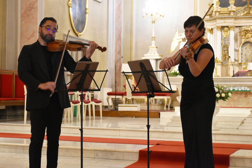 Az előző estékhez hasonlóan, augusztus 16-án, szerdán is a zene hangjai segítettek a vasárnapi Szent István ünnepre való ráhangolódásban, a billentyűs hangszerek helyét azonban átvették a vonósok. Nagyváradról érkeztek az előadók, a Kaganovskiy házaspár, Artúr és Eszter. A nemzetközileg elismert duó tizenöt éve lép fel Észak-Amerika, Dél-Amerika és Európa különböző országaiban. Nagybányán egy Artur Kaganovskiy által 2018-ban készített brácsán, illetve egy 1720-ban, Carlo Antonio Testore által készített Ex-Pikayzen hegedűn szólaltattak meg Händel-, Mozart-, Rolla- és Sibelius-műveket.