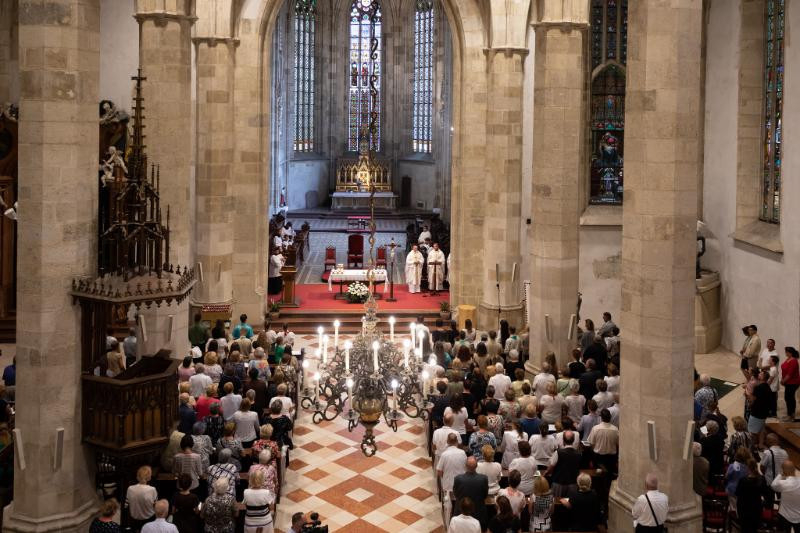 „Örvendezzünk mindnyájan az Úrban!” Az introitus e felszólításával, sőt ujjongó felkiáltásával vette kezdetét a magyar nyelvű ünnepi szentmise a pozsonyi Szent Márton-dómban, közismert nevén a koronázótemplomban augusztus 20-án, Szent István király ünnepén.