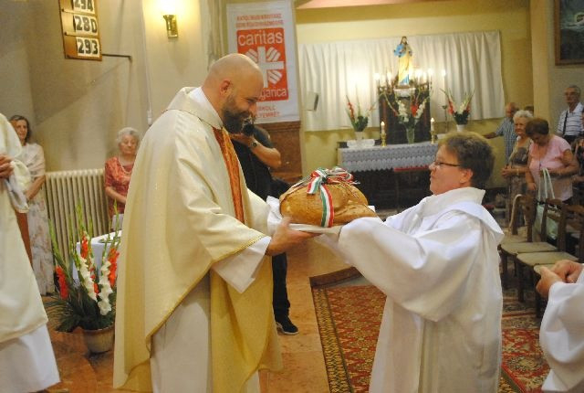 A búcsúi szertartás kezdetén Máté atya megáldotta az oltár elé elhelyezett, új búzából sütött kenyeret, melyet a szentmise végén kiosztottak a hívek között.