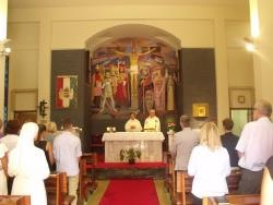 „Szent Istvánnak ahhoz, hogy valóban sziklára építhesse a házát, ténylegesen is uralkodóvá kellett válnia” – kezdte homíliáját Melo Lajos atya. – „Államalapító királyunknak nem volt egyszerű feladata, hiszen egy olyan népnek kellett megmutatnia a letelepedett élet előnyeit, az emberi lét értelmét, amelynek már megvolt a kialakult szokásrendszere. Szent István tudatában volt annak, hogy a történelemből tanulni kell: a frankok, a Rómát is leromboló, kalandozó népcsoportok csupán vándorok voltak mindaddig, amíg életüket nem alapozták Krisztusra és az evangélium örömhírére. A kereszténység felvételével azonban igazi hazájukká vált Európa. Ebből a történelmi példából tanult Szent István is. S aki szorgalmasan, kitartóan tanulmányozta a történelmet, az maga is jó tanítóvá vált.”