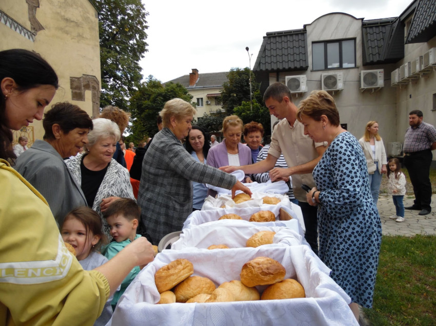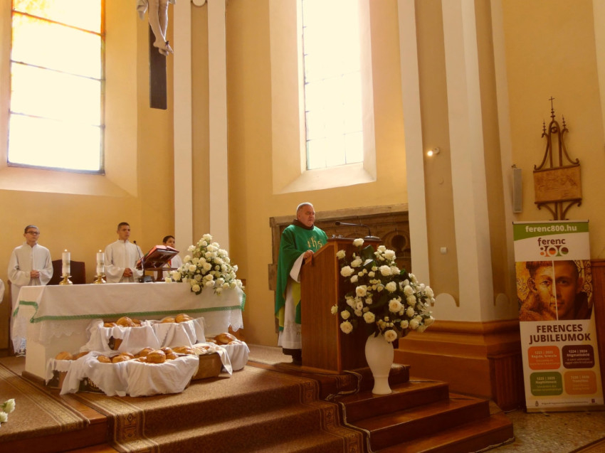 A szentmise végén az oltár elé kihelyezett kenyereket a ferences szerzetes megáldotta, majd a hívek a templomból kilépve családonként egy-egy kenyérrel térhettek haza otthonaikba.