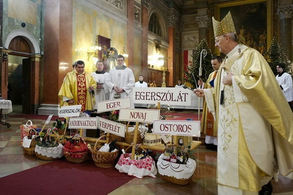 Szent János napja az Egri Főegyházmegye nagy ünnepe. Évről évre közösen imádkozunk, és hálát adunk azért, hogy a város bortermelői jó évet zártak – mondta beszédében az egri érsek, majd nemcsak a borokért, hanem az azokat mértékletesen fogyasztókért is fohászkodott. Majd pedig, mivel idén Szent Család vasárnapja december 27-ére esett, Ternyák Csaba érsek a családokért külön is imádkozott, és áldásban részesítette őket.