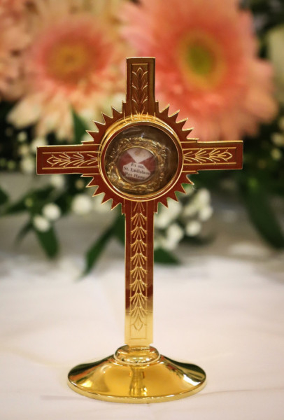 A szentmise elején megáldották a Szent György Lovagrend közvetítésével kapott csontereklyét és Palya János plébános felolvasta a Varga Lajos váci segédpüspök által kiadott hitelesítő dokumentumot. Az ereklyét a szentélyben egy erre a célra elkészített fa ereklyetartó vitrinben helyezték el aranyszínű ereklyetartóban.