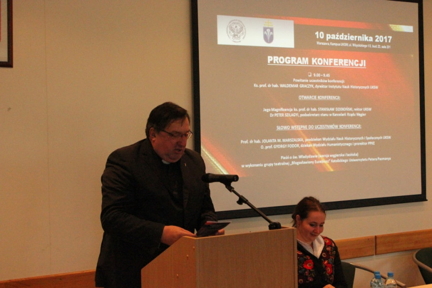 A rendezvényen köszöntőbeszédet mondott Jolanta Małgorzata Marszalska, az UKSW Történeti és Társadalomtudományi Karának dékánhelyettese, majd Fodor György prorektor, a PPKE Bölcsészet- és Társadalomtudományi Karának dékánja – ő Szent László követendő példáját hangsúlyozta a mindennapi életben.