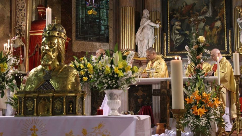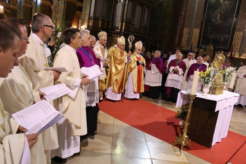 A Nagyváradi Római Katolikus Egyházmegye jeles ünnepe a zarándokok fogadásával vette kezdetét. A székesegyházban tartott ünnepi szentmisére az egyházmegye papsága, szerzetessége, hívei, a hivatalos, illetve közéleti személyiségek, valamint hagyományőrző csoportok mellett a szomszédos egyházmegyékből is érkeztek vendégek – jelen voltak Roos Márton temesvári római katolikus és Virgil Bercea váradi görögkatolikus püspök is, valamint a testvéregyházak képviselői. A főoltár elé kihelyezett herma mellett a Szent László Líceum diákjai és a cserkészek álltak díszőrséget.