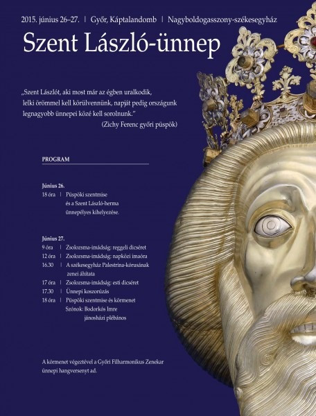 Június 26-án, az ünnep előestéjén 18 órától püspöki szentmise keretében helyezik ki Szent László hermáját nyilvános tiszteletre a győri Nagyboldogasszony-székesegyházban.