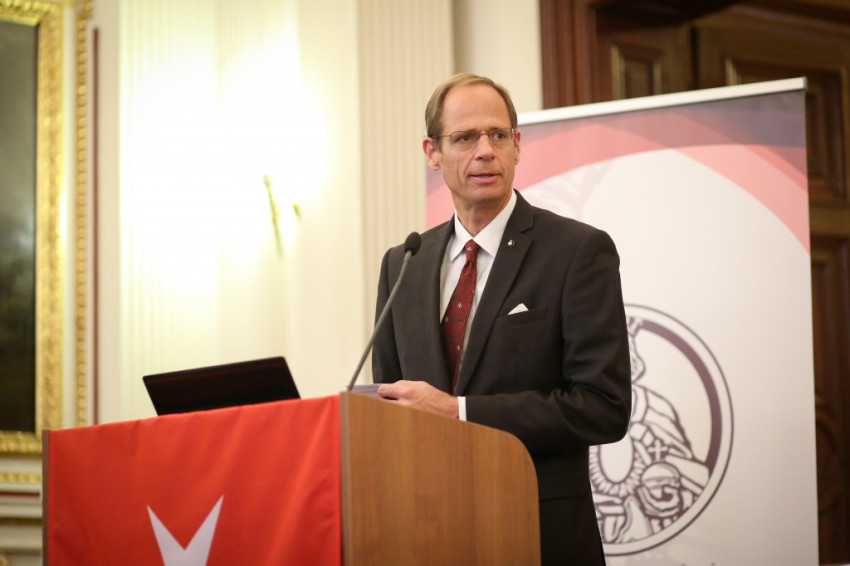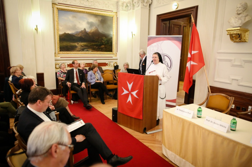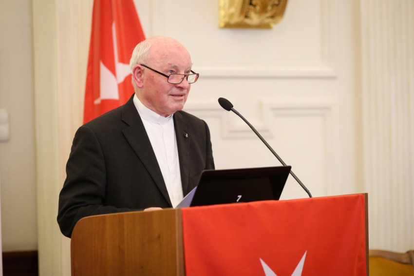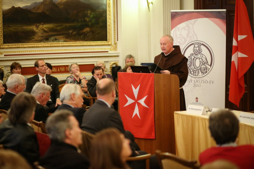 Török József, a Pázmány Péter Katolikus Egyetem Hittudományi Karának professzora előadásában arra hívta fel a figyelmet, hogy amikor az ispotályosok fegyvert fogtak, nem egy szerzetesrend kapott felhatalmazást a harcra. A lovagok feladata a hit védelmezőjeként a keresztény helyek megvédése lett. A johannita lovagrend a történelem során – elsősorban az iszlám hódítással szembeszegülve – a keresztény területeket védte. Napjainkban más veszélyek fenyegetik a kereszténységet és így a katolikus Egyházat is. Az Egyháznak rá kell mutatnia az emberi személy lényegére, melynek jelentőségét a kereszténység ismerte fel a legjobban. E mellett az idők jeleit figyelembe véve azt is látnunk kell, hogy a keresztény történelemszemlélet szerint Isten a történelem ura.