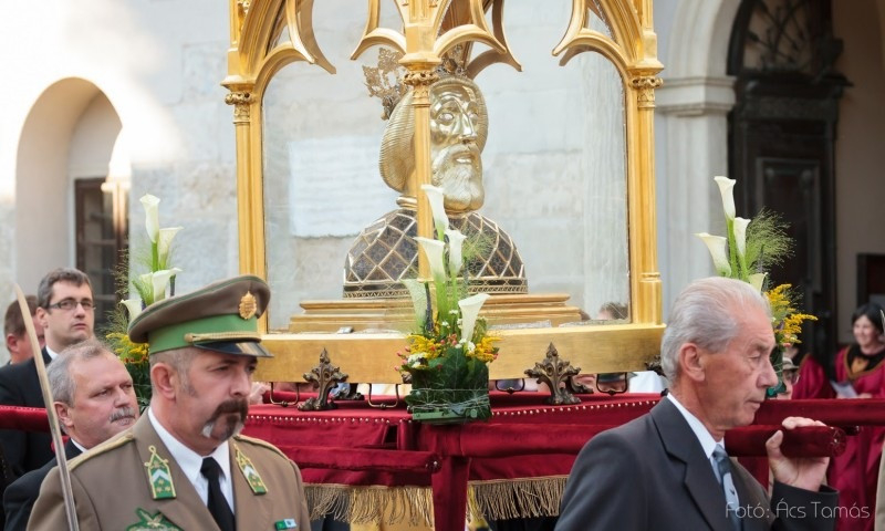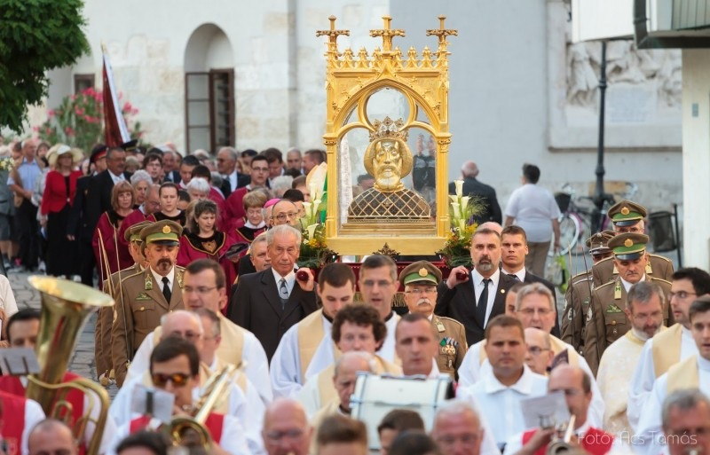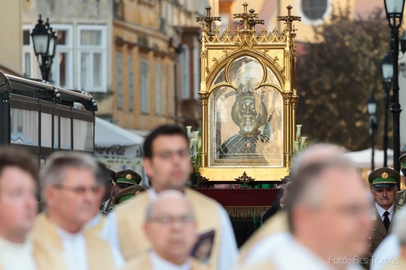 A szentmise végén szabadtéri körmenetben hordozták körbe Szent László fejereklyéjét, a Győrben őrzött, a középkori ötvösművészet remekeként is ismert hermát.
