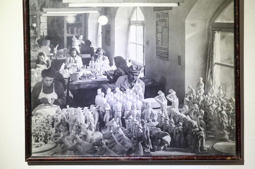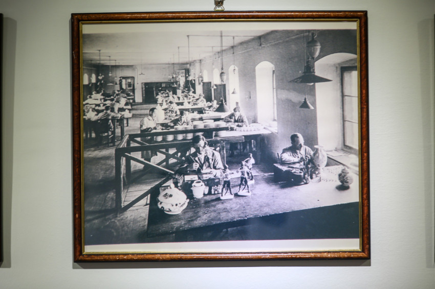 Az első teremben az időszalag mutatja e csaknem kétszáz év főbb állomásait, beleillesztve a kézművesműhely történetét a nagy világegészbe.