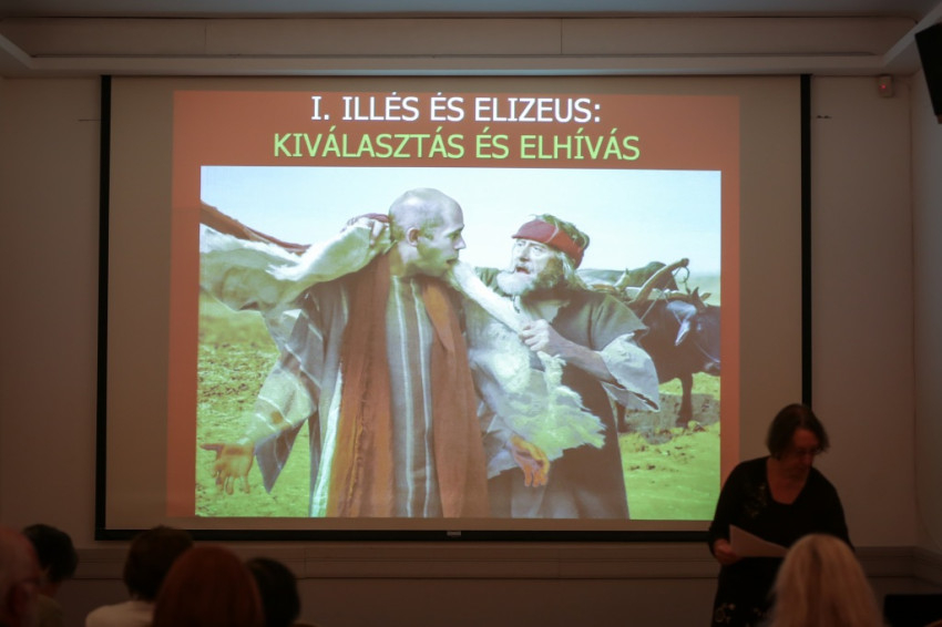 Az előadó először Illés és Elizeus történetére hívta fel a figyelmet, a kiválasztás és elhívás pillanataira: „Elindult tehát onnan Illés, és ráakadt Elizeusra, Sáfát fiára, aki éppen szántatott tizenkét iga marhával, s maga is egyike volt azoknak, akik a tizenkét iga marhával szántottak. Erre Illés odament hozzá, s rávetette palástját” (1Kir 19,19–21). Ebben a jelenetben a kiválasztást, elhivatottságot jelzi a köpeny, az ószövetségi próféták megkülönböztető jele.