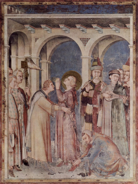 A hallgatóság figyelmébe ajánlotta Sághy Marianne az assisi bazilika altemplomának Szent Márton-kápolnáját, melyet 1312-ben, a rozgonyi csata évében szentelt fel Gentile da Montefiore bíboros, ferences szerzetes, magyarországi legátus – az ő közreműködésével dőlt el, hogy Károly Róbert lesz a magyar uralkodó. A kápolnában látható Simone Martini freskója: Szent Márton és a koldus Amiens város kapujánál – ezen az festményen már lóháton, lovagként láthatjuk Mártont, és ez az ábrázolási mód győz a következő évszázadokban.