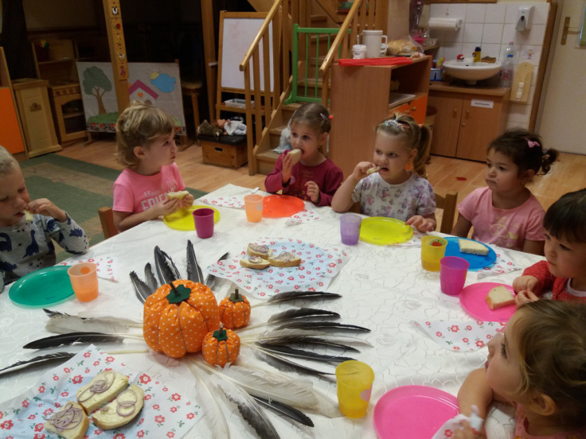 November 11-én az ünnepi falatkát, a libazsíros kenyereket, a dadus nénikkel közösen készítették el a gyerekek. Ezt követően a Szivárvány, Napocska és Csillag csoportosok dalos játékokkal, a német nemzetiségi, Holdacska csoportba járó gyerekek pedig táncukkal gazdagították az ünnepet. Az óvoda udvarán vidáman szólt az ének: Szent Mártonnak ünnepén, égő lámpást viszek én…