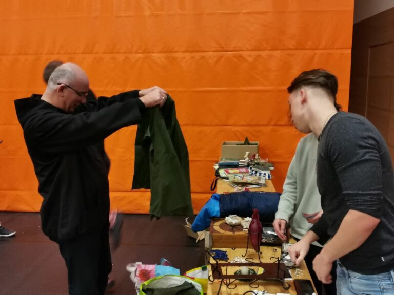 Az alkalmi árusok pedig igazán kitettek magukért, lelkesen buzdították a tanárokból, szülőkből, szerzetesekből, diáktársaikból és a Pannonhalmi Főapátság munkatársaiból álló vevősereget. Még Cirill főapát is érdeklődve járta körbe a standokat, és bár a kiszemelt ing nem volt a méretében, láthatóan élvezte a „kincsvadászatot”.