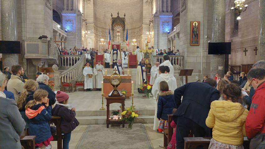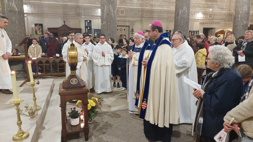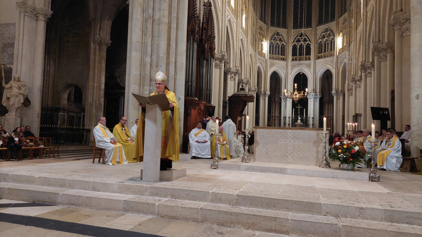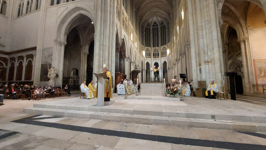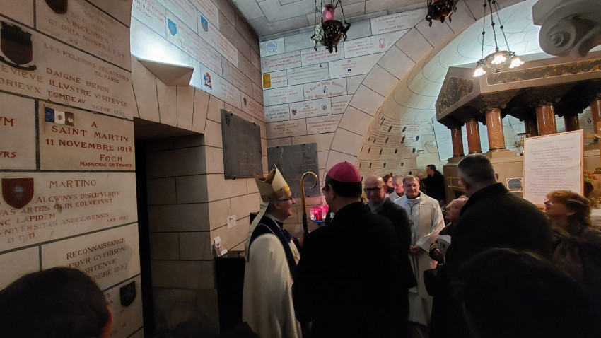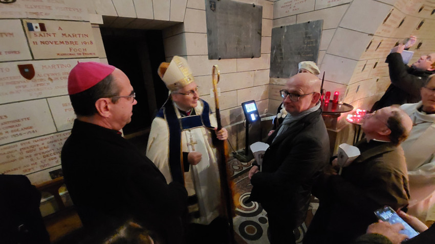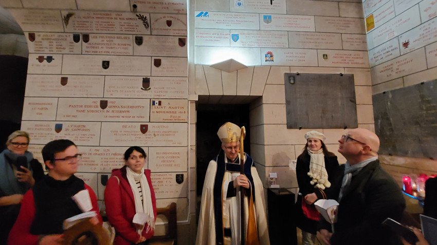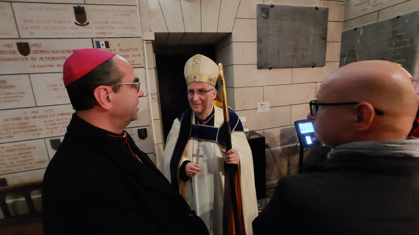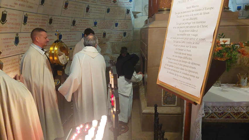 „Isten hozta önöket Tours-ban – köszöntötte magyarul a szombathelyi zarándokokat Vincent Jordy tours-i érsek. – Ezen a napon az eget és földet összekötő örömmel ünnepeljük Szent Mártont, védőszentünket. Újult örömmel ünnepeljük őt azokkal a testvéreinkkel együtt, akik szülőföldjéről érkeztek hozzánk, még akkor is, ha ő ma már a mennyek országának polgára. Ma délután erre az ünnepre szeretnék kicsit rávilágítani, felidézve, hogy Szent Márton európai, egyetemes ember és mindenekelőtt az evangélium hirdetője. Szent Márton kultúrája, nyitottsága és széles körű szellemi képzettsége révén korát megelőző európai személyiség lett, aki földrészünk nyugati területének szívében egyesítette azokat a hatásokat, amelyek személyiségét és identitását alkották.