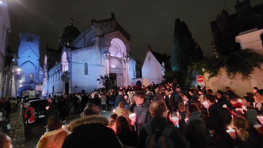 A hívők többezres tömege a szentmise után gyertyákkal, lampionokkal, énekelve tette meg a körülbelül egy kilométeres utat a Szent Márton-bazilikáig, ahol kihelyezték a szent ereklyéjét, mely előtt elmélkedés és éneklés után a jelenlévők leróhatták tiszteletüket.