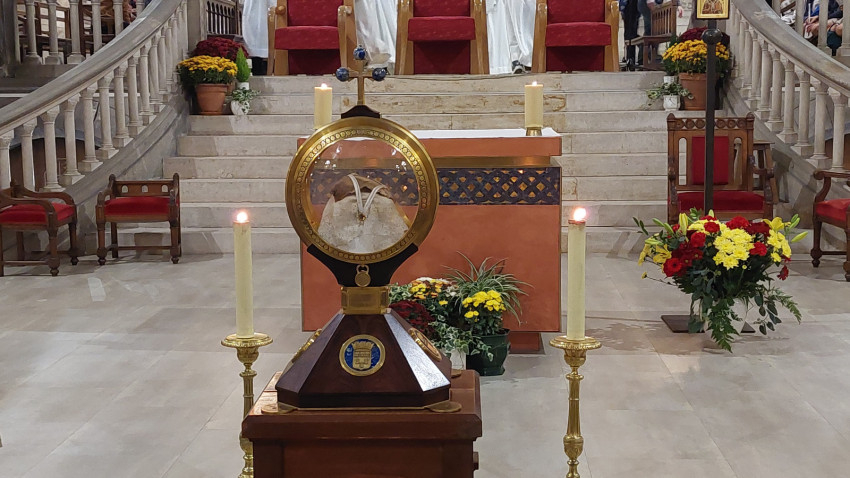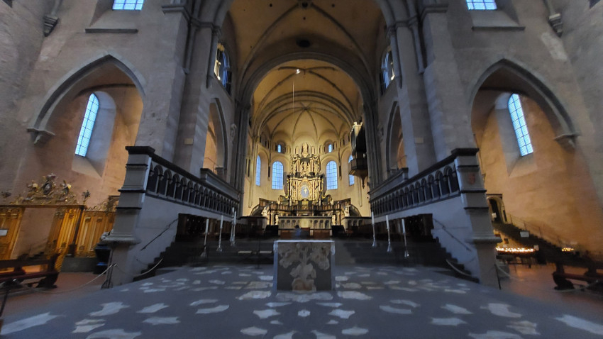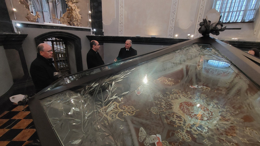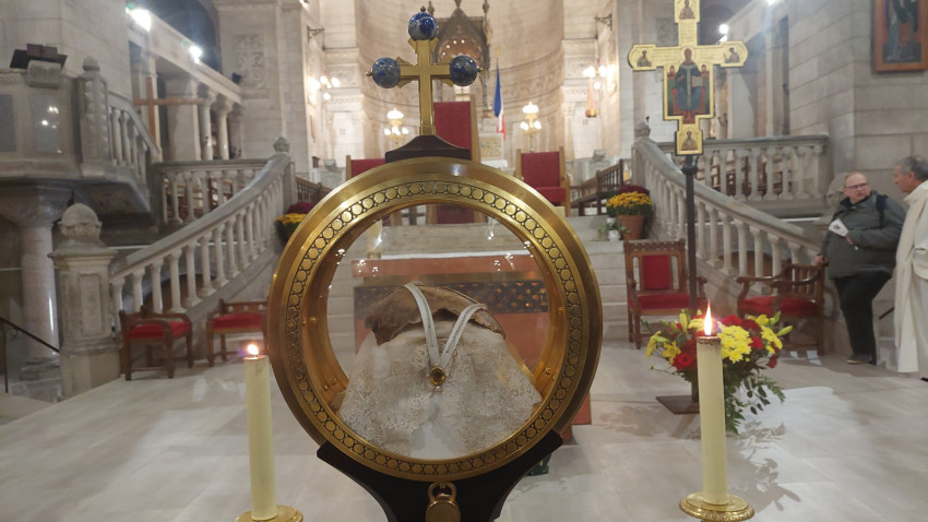 Ebben a kolostorban őrzik Szent Móric és mártírtársainak vérereklyéjét is, amit még Szent Márton hozott ide. Különleges alkalom volt a csoport számára, hogy Szent Márton és Szent Radegunda ereklyéje mellett hódolhattak az eredeti üvegben található vérereklye előtt. Az évszázados viszontagságok közepette is csodálatos módon fennmaradt a relikvia, melyet a többtonnás márvány oltár alatt őriztek, és csak annak áthelyezésekor került elő.