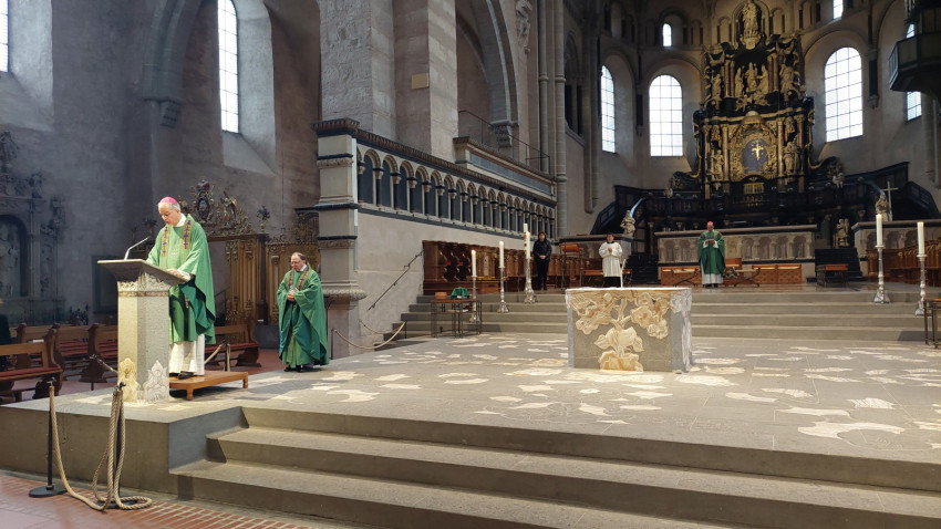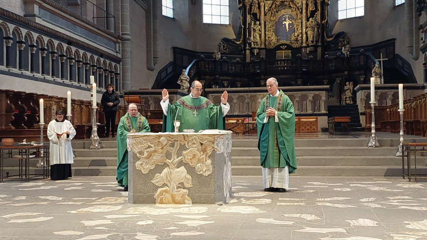A zarándokút zárásaként Székely János püspök Jörg Michael Peters trieri segédpüspökkel együtt német nyelvű szentmisét mutatott be a bazilikában.