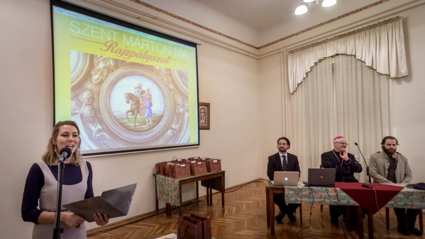 A Szent Márton ma című gyermekrajz-pályázat díjkiosztóján örömteli gyermekzsivajjal telt meg a Szent István Hitoktatási és Művelődési Ház terme, ahol kiállították a beérkezett munkákat. Mintegy 200 rajzot küldtek be a Székesfehérvári Egyházmegyei Múzeum felhívására: Mit csinálna Szent Márton, ha a 21. századba csöppenne? Hogyan segítene a rászorulókon? A szervezők arra voltak kíváncsiak, miként elevenedik meg az 1700 éve, Pannóniában született püspök a gyermekek rajzain. Így jelent meg Szent Márton a bevásárlóközpontokban, az építkezéseken, a hajléktalanok közt segítőként, vagy éppen bajba jutott állatok megmentőjeként.