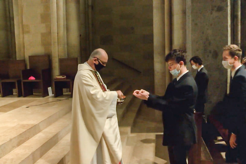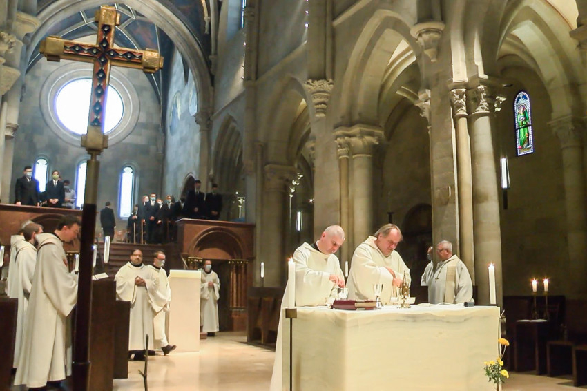 A liturgián kihelyezték az oltárra a szent ereklyéjét. A bencés közösség körében ünnepelt Várszegi Asztrik OSB emeritus főapát, valamint a Pannonhalmi Bencés Gimnázium diákjai, akik a kollégiumban maradtak.