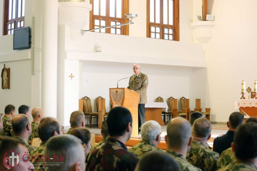 Sajtos Szilárd református tábori lelkész a becsületről, az erényről és a kitartásról beszélt a katonáknak.