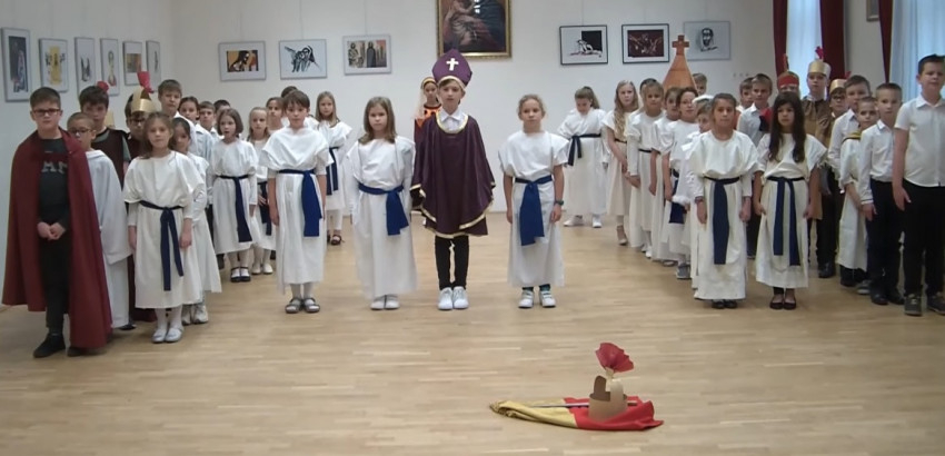 A veszprémi Padányi Katolikus Iskola névadójának ünnepén a 3. évfolyamos gyerekek műsor keretében jelenítették meg Szent Márton életének üzenetét. Az előadásra örömmel készültek és lelkesen adták elő diáktársaiknak.