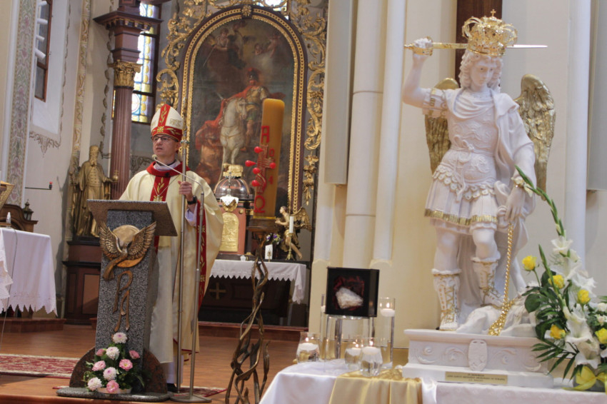 Prédikációjában Lucsok Miklós püspök megemlékezett arról a pillanatról, amikor a püspöki konferencia ülésén meghozták a döntést, hogy az idei évet Szent Mihály arkangyal évének nyilvánítják, valamint felelevenítették azt az ősi történetet, mely szerint az egyik angyal gőgösség miatt nem akarta szolgálni az Istent, és a mai napig sok embert téveszt meg. Ezért az ember hűtlenné válik az Istenhez.