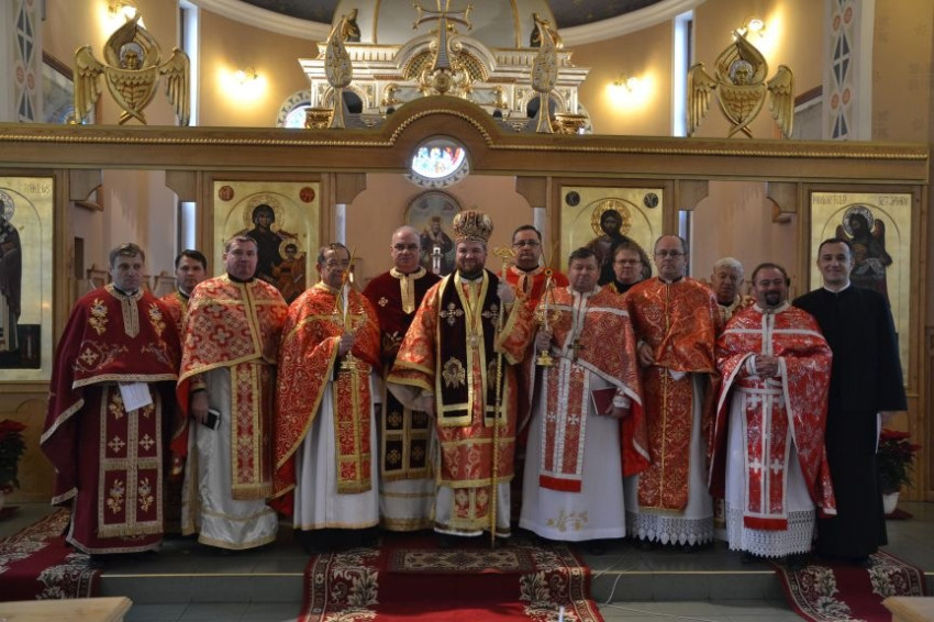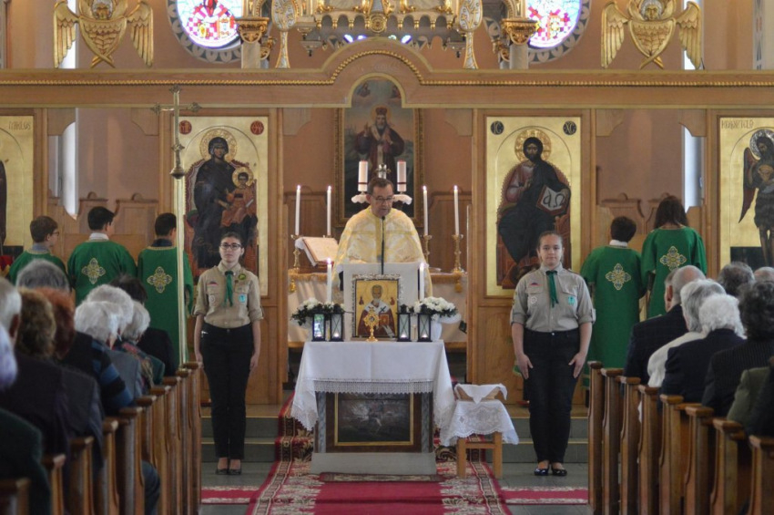 A körmenetet követő Szent Liturgián a templom parókusa, Pallai Béla címzetes esperes köszöntő beszédében annak fontosságát hangsúlyozta, hogy ne csak a téli hónapokban jussanak eszünkbe az ajándékozó szent példamutató tettei, hanem az év minden napján, bátran és bizalommal fordulva hozzá közbenjárásért. Háláját fejezte ki az egyházközség és a szatmári görögkatolikusok nevében; majd a templom történetéről szóló könyvvel s képpel ajándékozta meg a vendégeket.