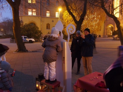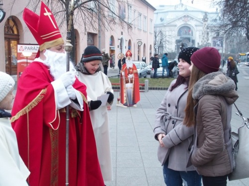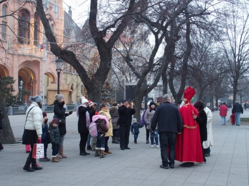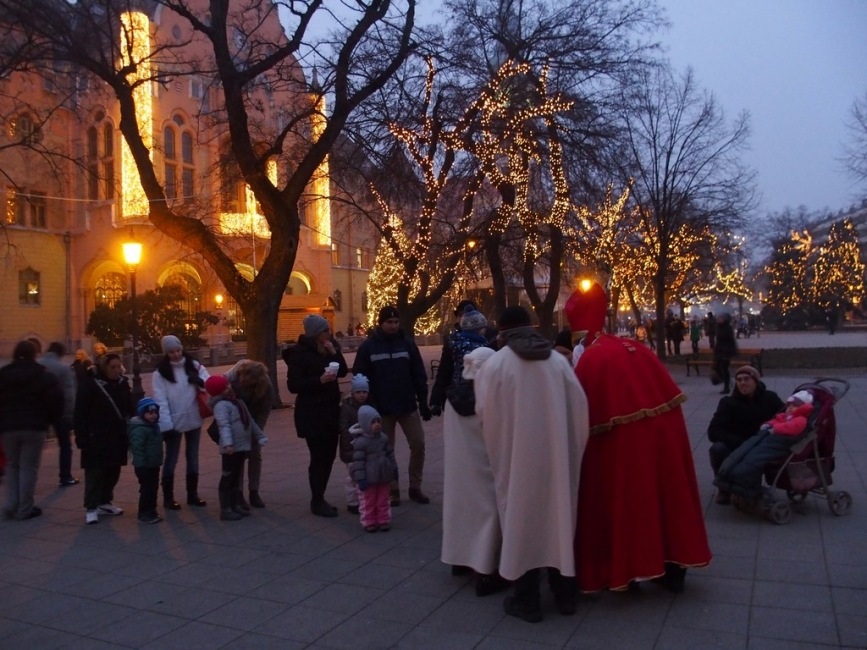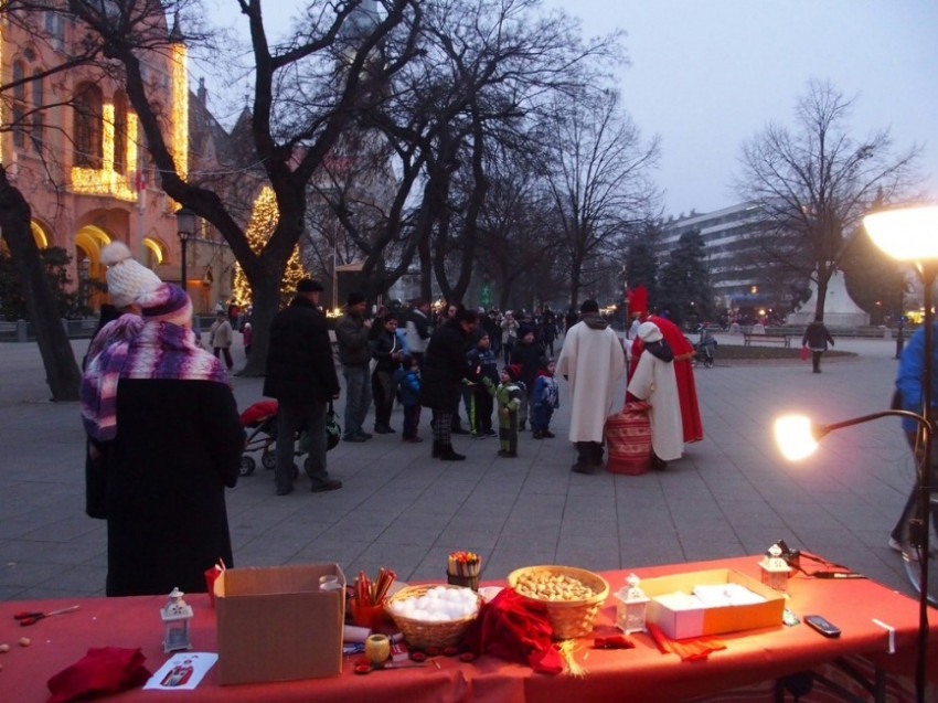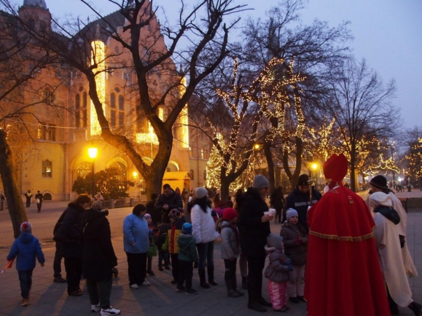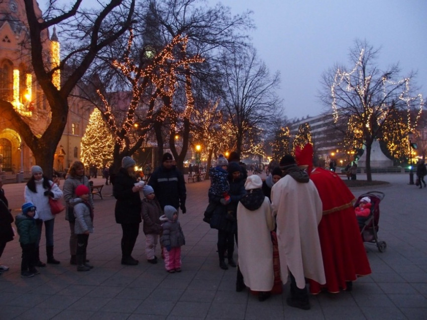 A Kalocsa-Kecskeméti Főegyházmegye Családbizottsága és a Kecskemét-Széchenyivárosi Közösségépítő Egyesület (SZÉK) által működtetett Parázs Központ szervezésében Kecskemét főterén december 5-én Szent Miklós mai képviselője várta a gyerekeket – akik a hideg ellenére is szép számmal érkeztek.