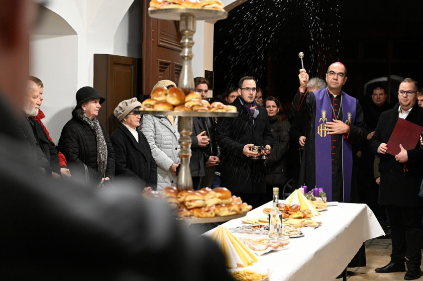 A szentmise után a megyéspüspök, a segédpüspök és a plébánia lelkipásztorai a hívekkel együtt átvonultak a felújított plébániaépületbe, hogy hálát adjanak Istennek az elkészült épületért, a megújult lakrészekért, a közösségi helyek kialakításáért, az irodai helyiségekért.