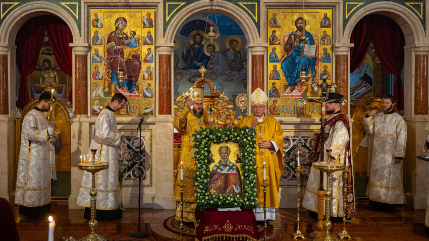 A főpásztor végül miroválásban részesítette a jelenlévőket, amihez olyan illatos olajat használt, amelybe a „Szent Miklós csontjaiból folyó, Bariból származó mannából” is cseppentettek.